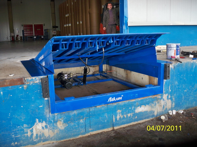 - The ramp platform, which consists of a strong steel construction, can be stopped at the desired position and hydraulically braked.